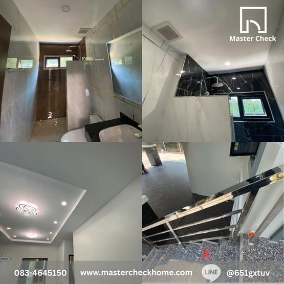 สิ่งที่เราตรวจ: ความดิ่งฉากของผนังฉาบ, ความเรียบร้อยของงานปูกระเบื้อง (เคาะหาจุดร่อน), รอยรั่วซึมของหลังคาและขอบหน้าต่าง ซึ่งเราตรวจสอบละเอียดเพื่อให้เจ้าของบ้านได้รับงานที่คุ้มค่าเงินที่สุด